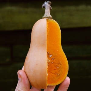 La plus petite et la plus savoureuse des Butternut, resplendissante coupée en deux et rôtie, avec sa peau.